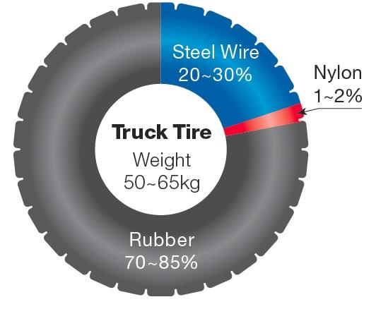 Large to small tires all able to process, except for special tires (smaller than Ø1300mm x 350mm).